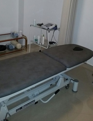 - Tratamiento de FISIOTERAPIA RESPIRATORIOA: Bronquitis, enfisema, EPOC, reeducación abdomino-diafragmática. - Tratamiento de REHABILITACIÓN GERIATRICA y NEONATOLOGÍA: Tortícolis congénita, psicomotricidad, parálisis. - Fibromialgias, síndrome de fatiga crónica. - ELECTROTERAPIA: Ultrasonidos, infrarrojos, microondas, onda corta, corrientes de baja y media frecuencia. - MECANOTERAPIA: Mesa de manos, rueda de hombros, paralelas. - Tracciones Cervicales y Lumbares.